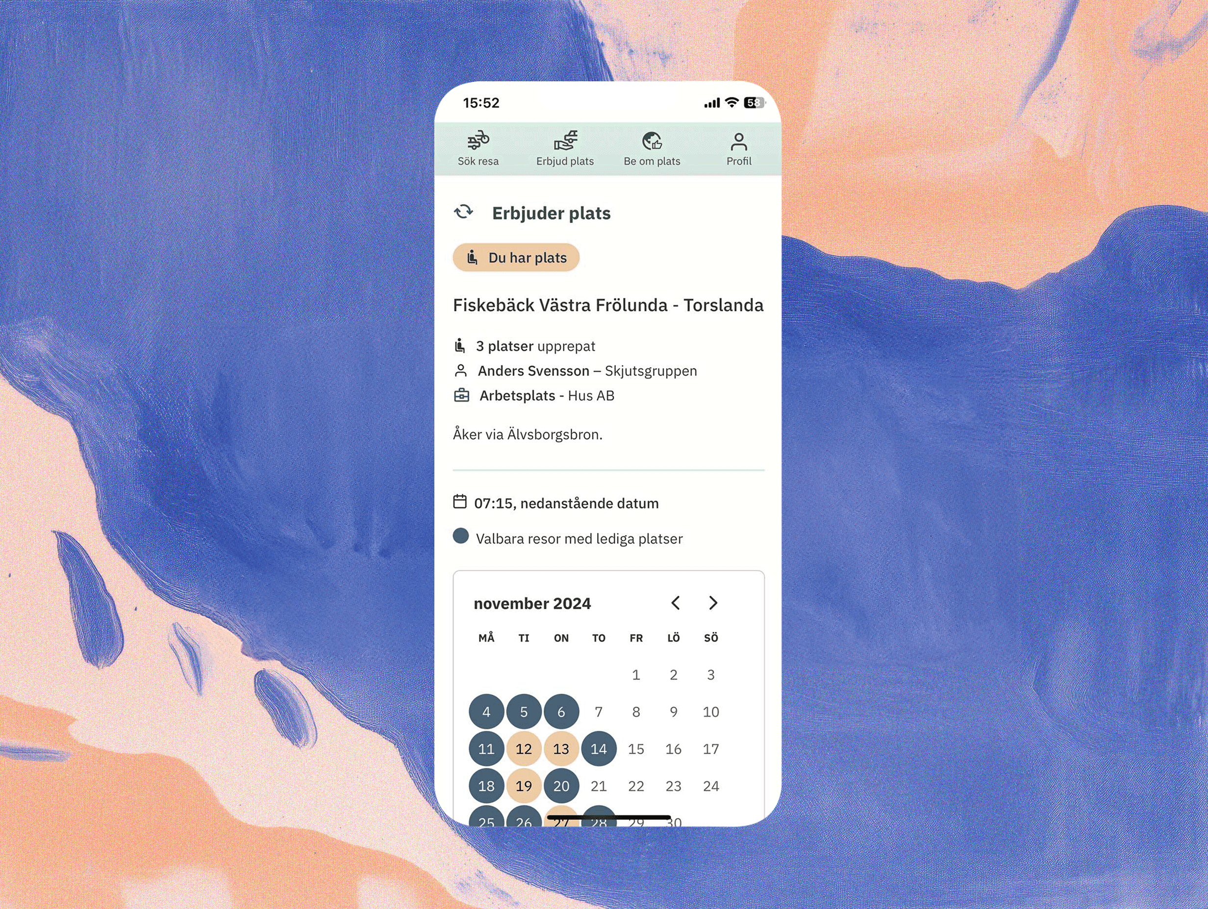 Erbjud plats i ditt fordon